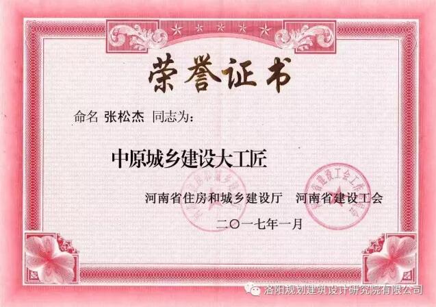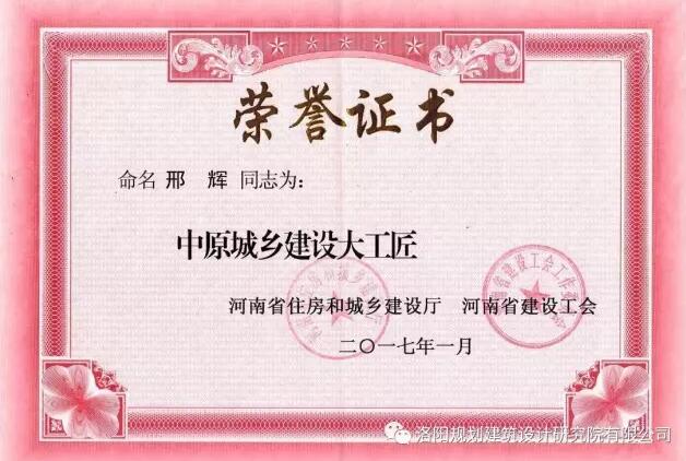 近日,河南省住房和城鄉(xiāng)建設廳、河南省建設工會公布了“關于命名2016年中原城鄉(xiāng)建設大工匠”的評選結果,我公司第一城鄉(xiāng)規(guī)劃院院長邢輝、第二建筑設計院院長張松杰兩位同志獲此殊榮。
